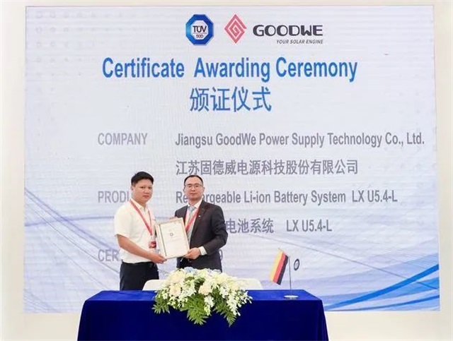 ▲固德威儲能電池獲得TUV南德頒發的IEC62619證書