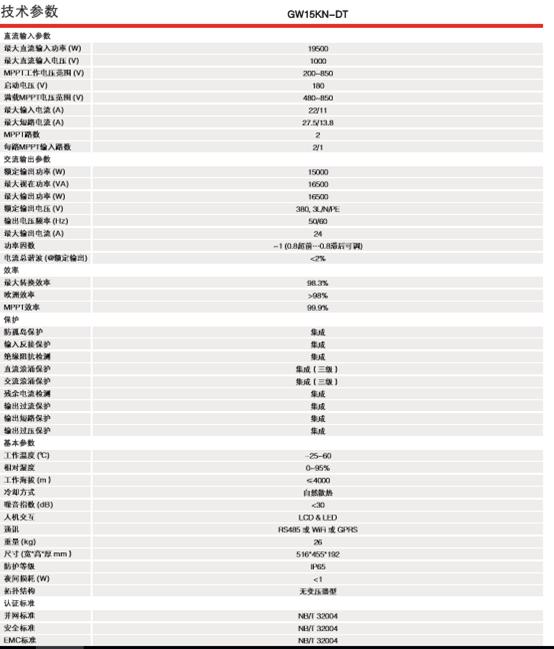 固德威SDT系列光伏逆變器可廣泛應用于家用屋頂、工商業屋頂等中小型分布式電站。SDT系列光伏逆變器通過先進的拓撲結構及創新的逆變控制技術,實現高達98.3%的轉換效率,提高發電量及用戶投資收益。GW15KN-DT大幅提升SDT系列功率密度,高配不貴,全面提升光伏系統發電量及用戶收益。