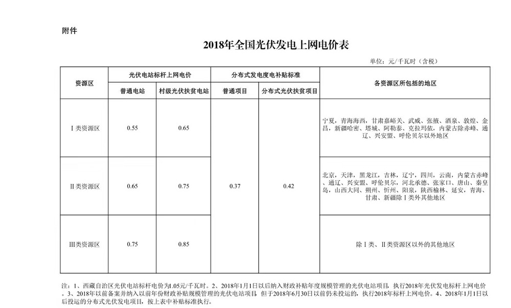 2018年全國光伏發(fā)電上網(wǎng)新電價