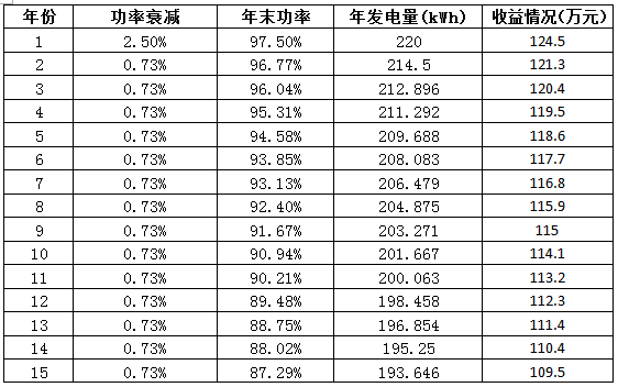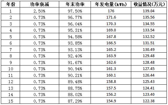 ③收回成本時間:從上表可以看出,前7年的總收益為937.21萬元,自投成本900萬元(4.5元/W)從第7年也可以收回成本。