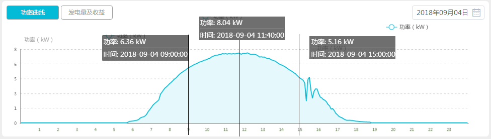 以某10kW電站發電功率曲線圖為例,9月4日這一天: