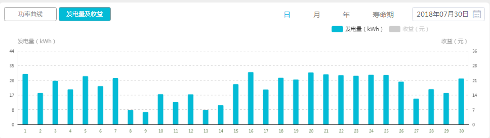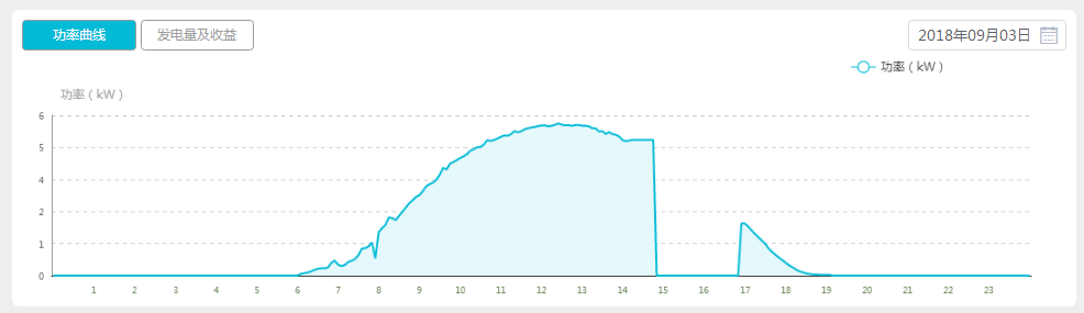 ② ?從曲線來看,9:00-15:00發電情況良好(實際上早于9點的發電量也很好),組件不要出現遮擋,否則嚴重影響發電功率。