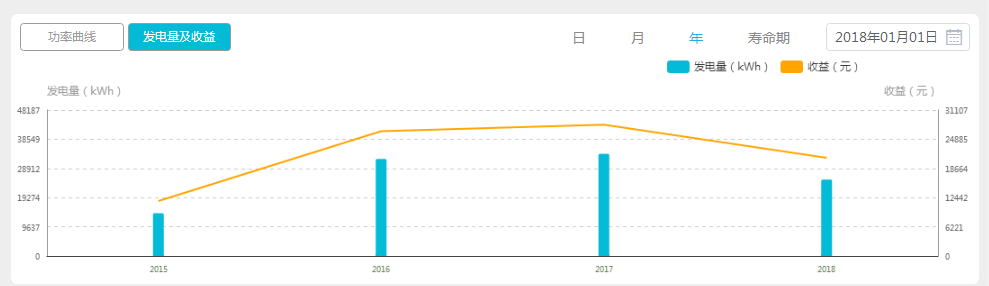 2015年和2018年都不是整年的發電量,比較發現,17年的發電量比16年的要多(一般考慮到組件的衰減、失配情況發電量要變低),一個原因就是17年好天氣要比16年要多,第二個可能性就是電站在17年主動做了運維或者關注了固德威光伏社區。