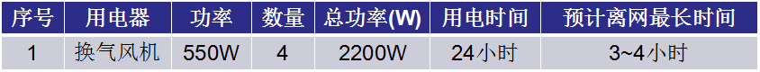 · 重要負載:4*換氣風扇,單個風扇的功率 550W(如果換氣扇不工作,養雞棚內供氧不足)