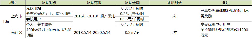 ·???????? 對2018年1月1日至2020年12月31日期間并網的分布式發電項目,給予0.25元/度補貼,補貼執行期限5年。