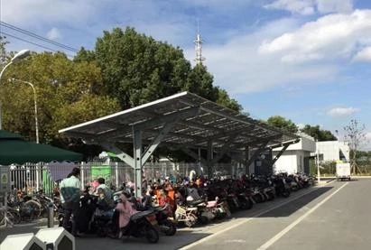 隨著固德威搬入新廠房,所需要建設(shè)的電動車和電動自行車車棚為光儲充項(xiàng)目實(shí)施提供了條件;因?yàn)檐嚺锏慕ㄔO(shè)不僅給員工的車輛提供安置、充電之所,更可以實(shí)際體現(xiàn)戶用光儲充及小型商業(yè)光儲充的應(yīng)用。