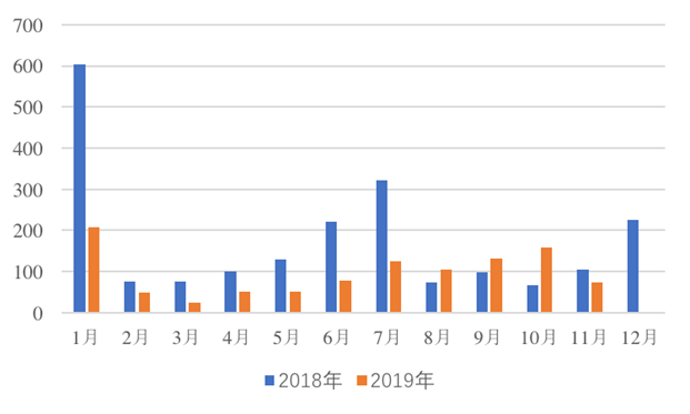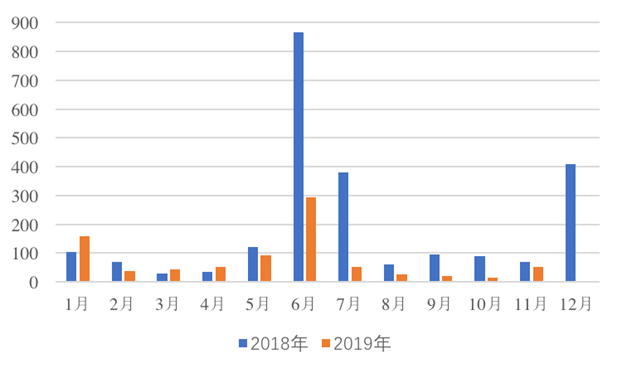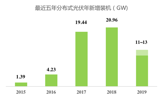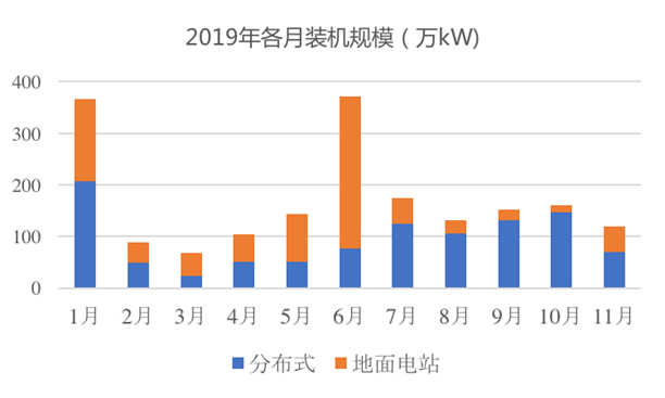 2019年1~11月,光伏新增裝機18.96GW,同比下降50%。其中,