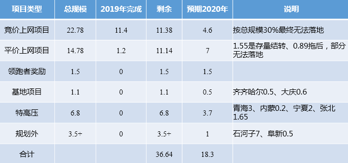 由于統計的時間節點差異,全年新增的統計數據有很大不確定性,預期在26~30GW之間,有可能有較大量結轉到2020年。