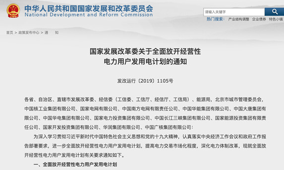 6月22日,國家發展改革委下發了《關于全面放開經營性電力用戶發用電計劃的通知 》,提出: