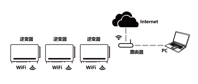 1、WiFi通訊方式適用于逆變器臺數(shù)較少的項目,優(yōu)勢是不需要布線,也不產(chǎn)生流量費用;