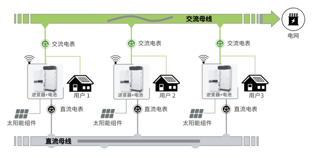 在一些國(guó)家,住宅不允許賣電進(jìn)入電網(wǎng)(防逆流),這導(dǎo)致多個(gè)住宅之間無(wú)法共享電力。直流母線供電系統(tǒng)可以解決這一問(wèn)題。
