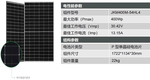 用戶屋頂可鋪設面積大約有70㎡,再結(jié)合當下市面常見的組件類型和用戶意見,最終選用晶科400Wp組件,型號為JKM400M-54HL4。綜合屋頂面積和家庭用電考慮,鋪設32塊最適宜。