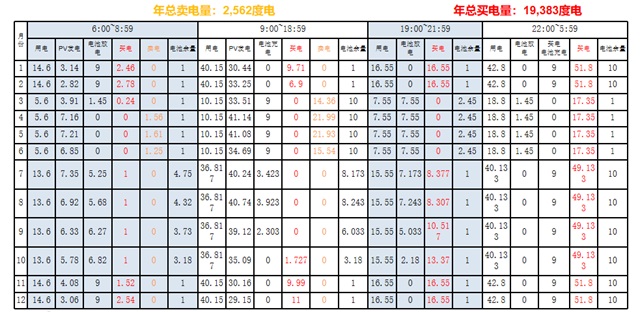 以下為不同月份每天的工作情況。詳細解釋了PV發(fā)電、電池和用電量在每個不同階段是如何工作的。