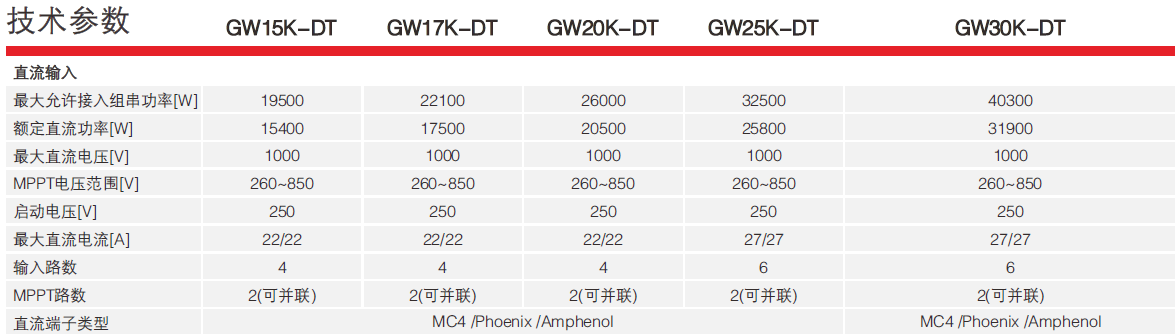 下圖截選了固德威DT系列15-25kW的產品