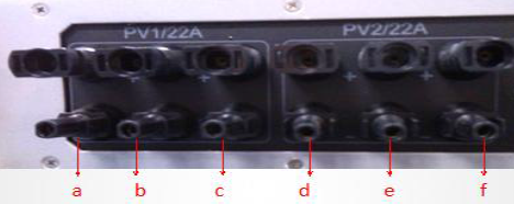 其共有6路直流輸入,分別為a、b、c、d、e、f。其中白色的兩個方框代表兩路MPPT輸入。