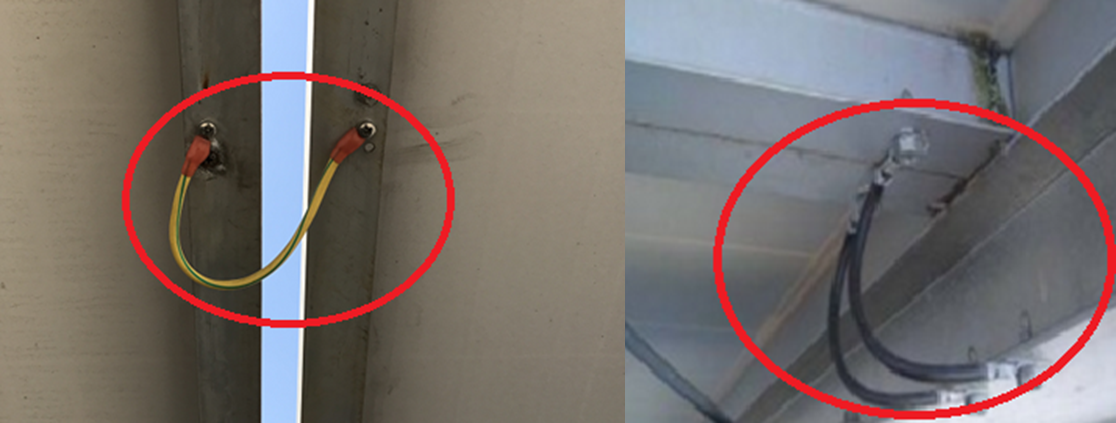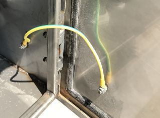 配電箱的柜門與柜體要做跨接線,保證可靠接地,如下圖所示。
