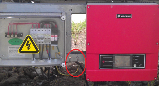 逆變器的機殼保護接地可以單獨使用接地極,也可以和配電箱共用一個接地極(通常),如下圖所示。