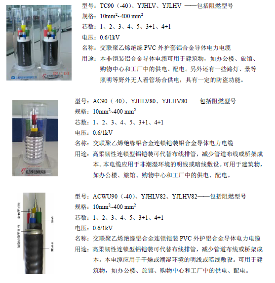 常見鋁合金線纜規(guī)格(遠(yuǎn)東電纜提供)