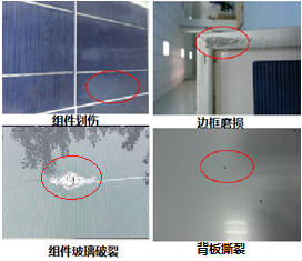 (2)檢測電池板的外觀,是否有明顯破損、變形,肉眼可直觀看出,如圖3;組件內(nèi)部的隱裂、斷柵、熱斑只能借助專業(yè)的檢測設備,如圖4;