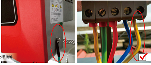 (2)交流線纜選用的是YJV電力電纜,檢查選用的線纜線徑是否符合線路載流量和壓降的要求。尤其是很多農(nóng)戶,會選擇鋁芯的線作為交流輸出線,規(guī)格相對銅線要選擇粗一些。同時建議客戶剝線后,對線頭進行壓接,確保導體部分不會外露,如圖11和圖12所示。