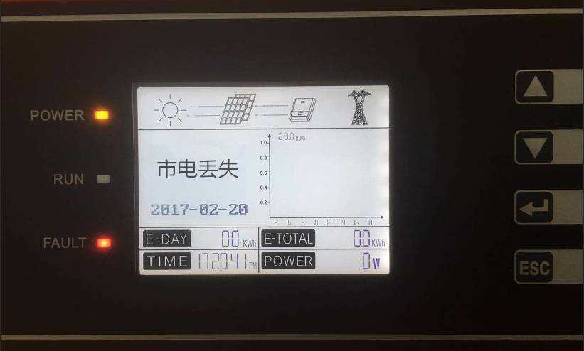 ③在逆變器顯示屏上查看電網電壓Vac或者VL1、VL2、VL3的數值是否正常;